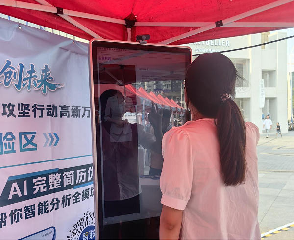 AI科技赋能,解锁求职新姿势。智联招聘独家打造的“AI求职赋能体验区”吸引了大量年轻人。模拟面试区则通过算法生成岗位相关问题,求职者回答后即时获得表情管理、语言逻辑等反馈。